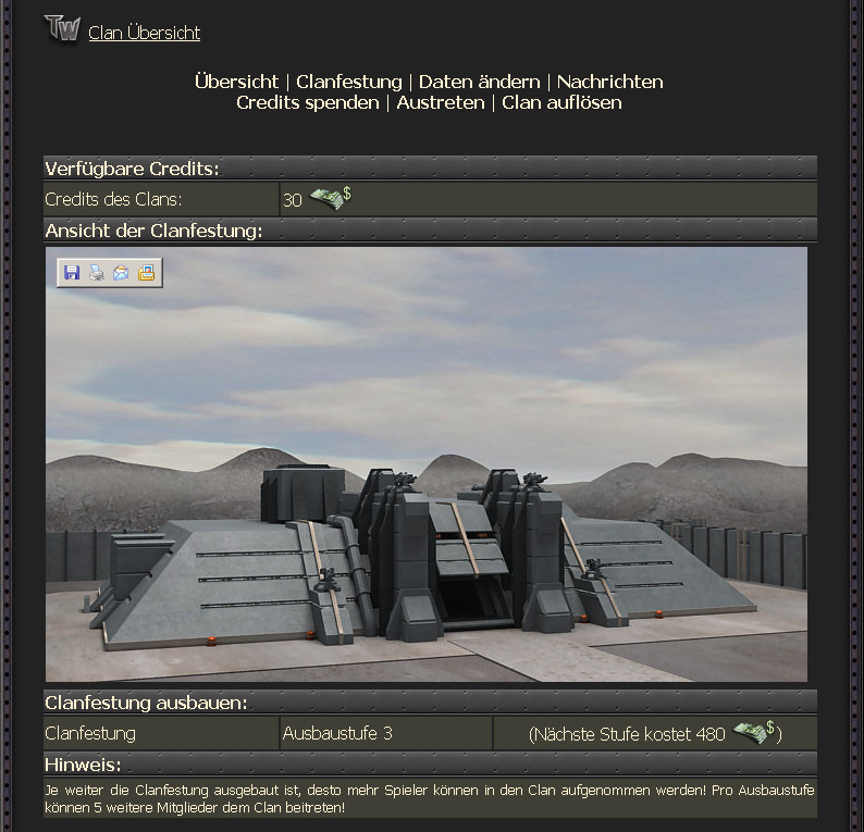 The clan requires donations of credits by the clan members in order to upgrade the clan fortress.